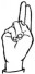 На ћирилици написано РУЖИЦА РЕСКОВИЋ састоји се из 14 слова [?]. Исписано ћириличном једноручном азбуком за глувонеме: